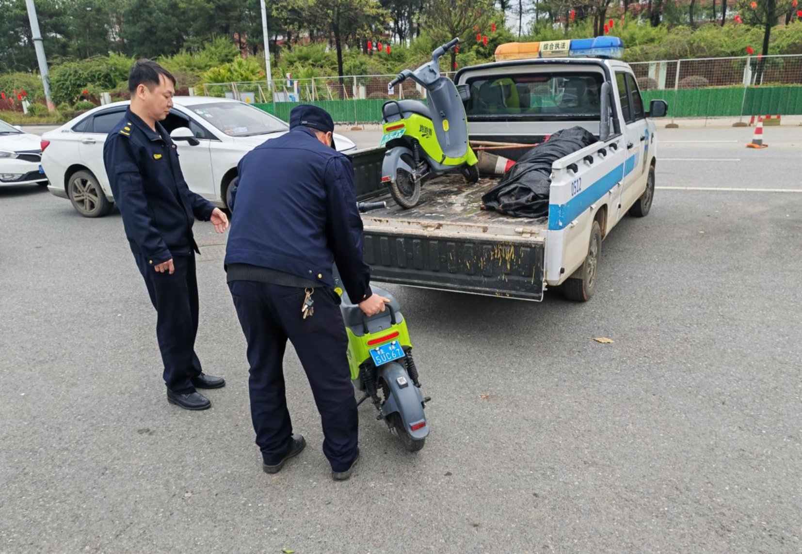 整治现场,执法人员在日常巡查中采取“集中处置”的方式开展工作。对占道的车辆,合力抬上执法皮卡车,统一运至指定存放点。从人行道到学校门口,从公交站点到路口交汇处,执法人员一路排查、一路整治,原本杂乱的路面逐渐变得整洁有序。