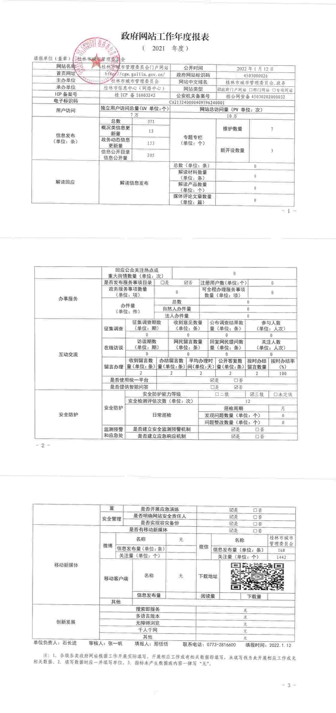 桂林市城市管理委员会2021年度政府网站工作年度报表
