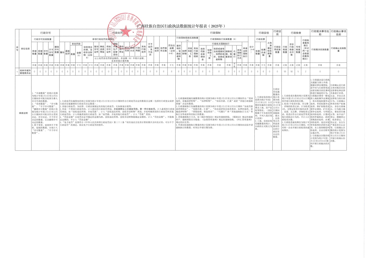 桂林市城市管理委员会2025年度行政执法数据统计年报表