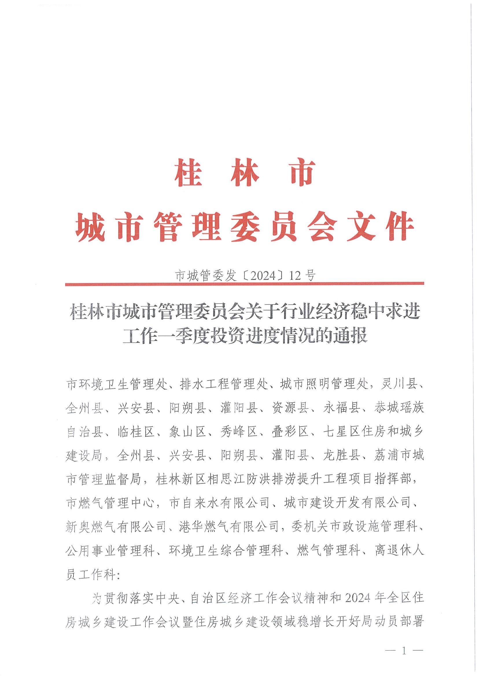 桂林市城市管理委员会关于行业经济稳中求进工作一季度投资进度情况的通报