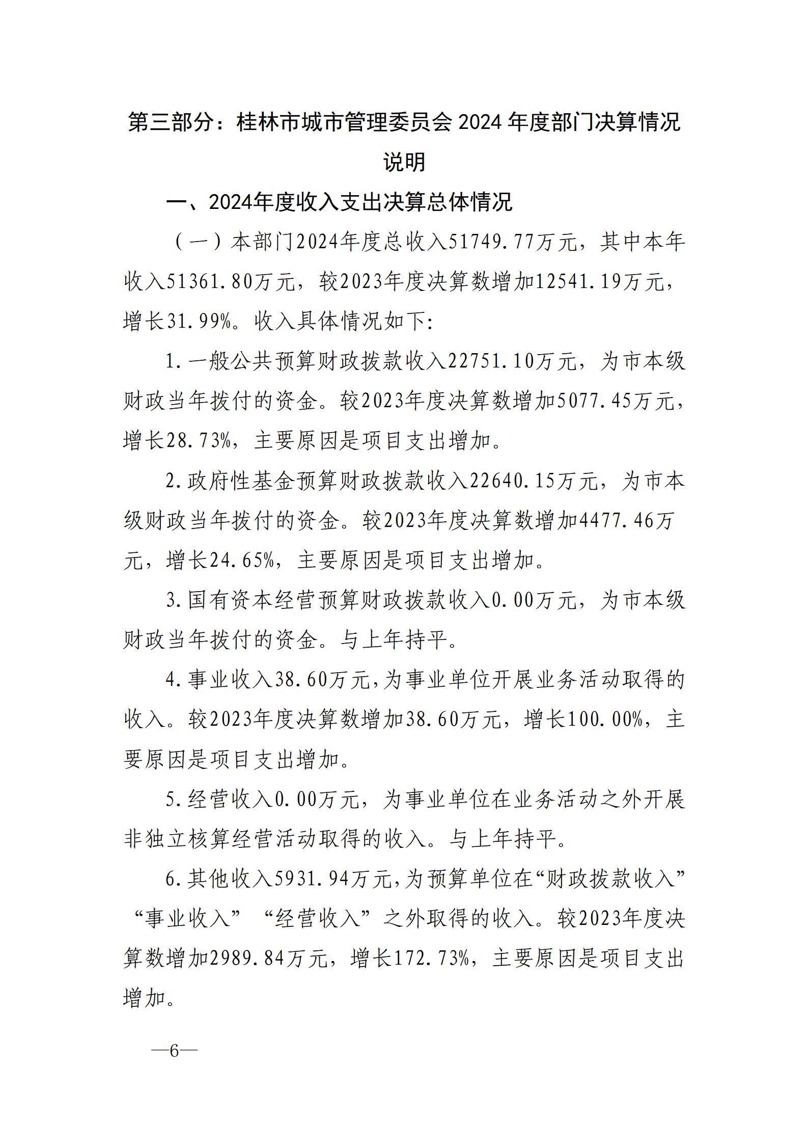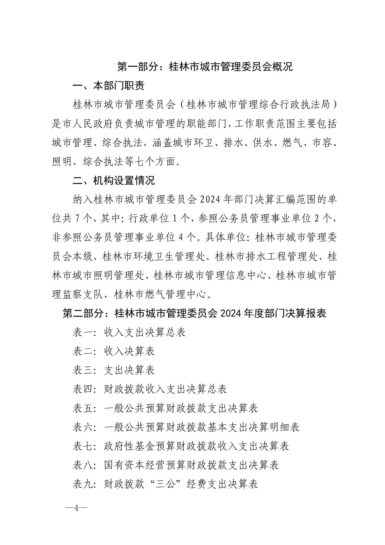 桂林市城市管理委员会 2024年度部门决算