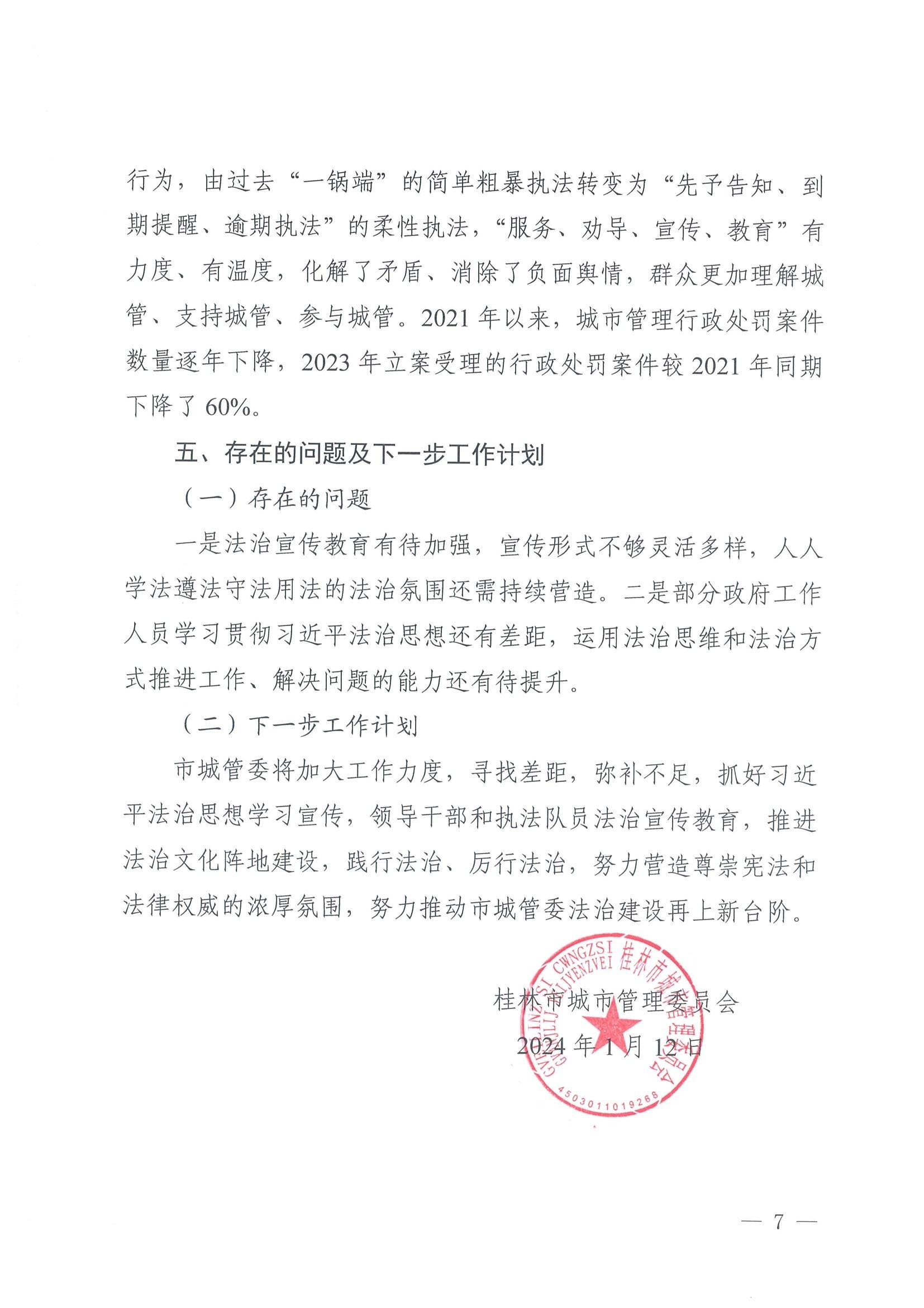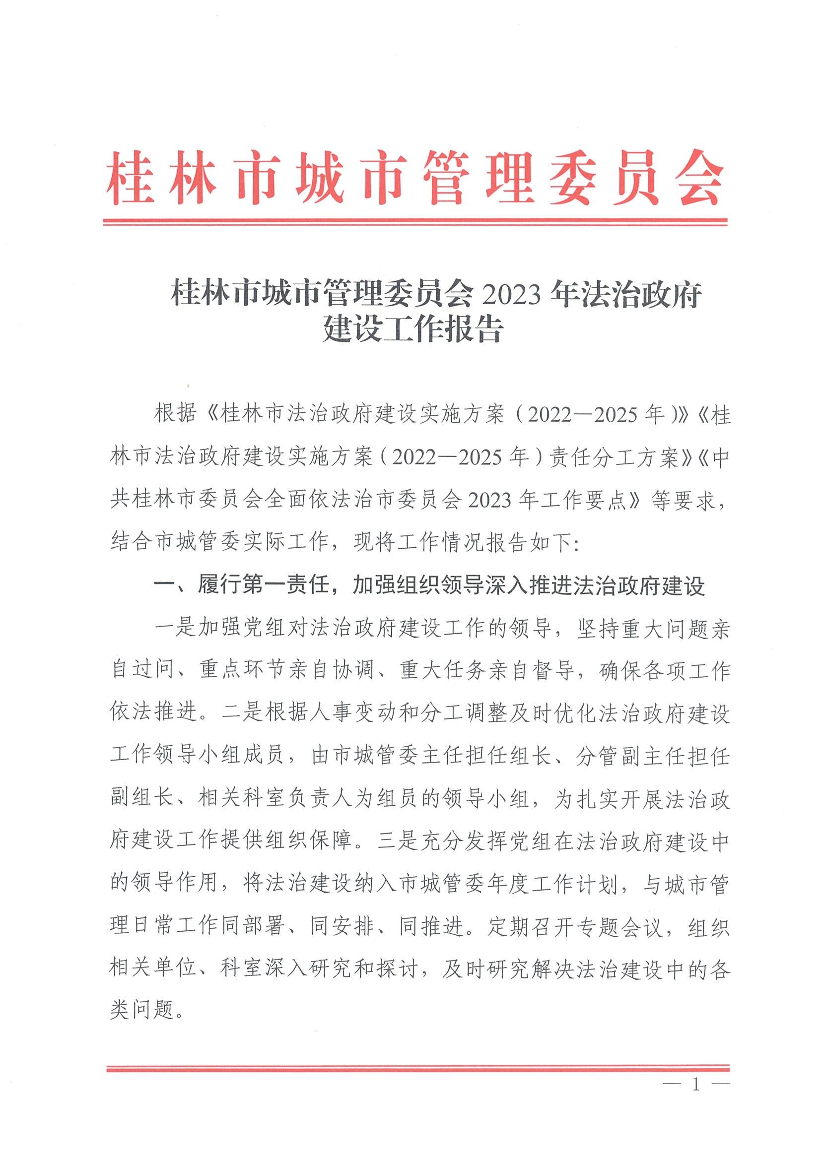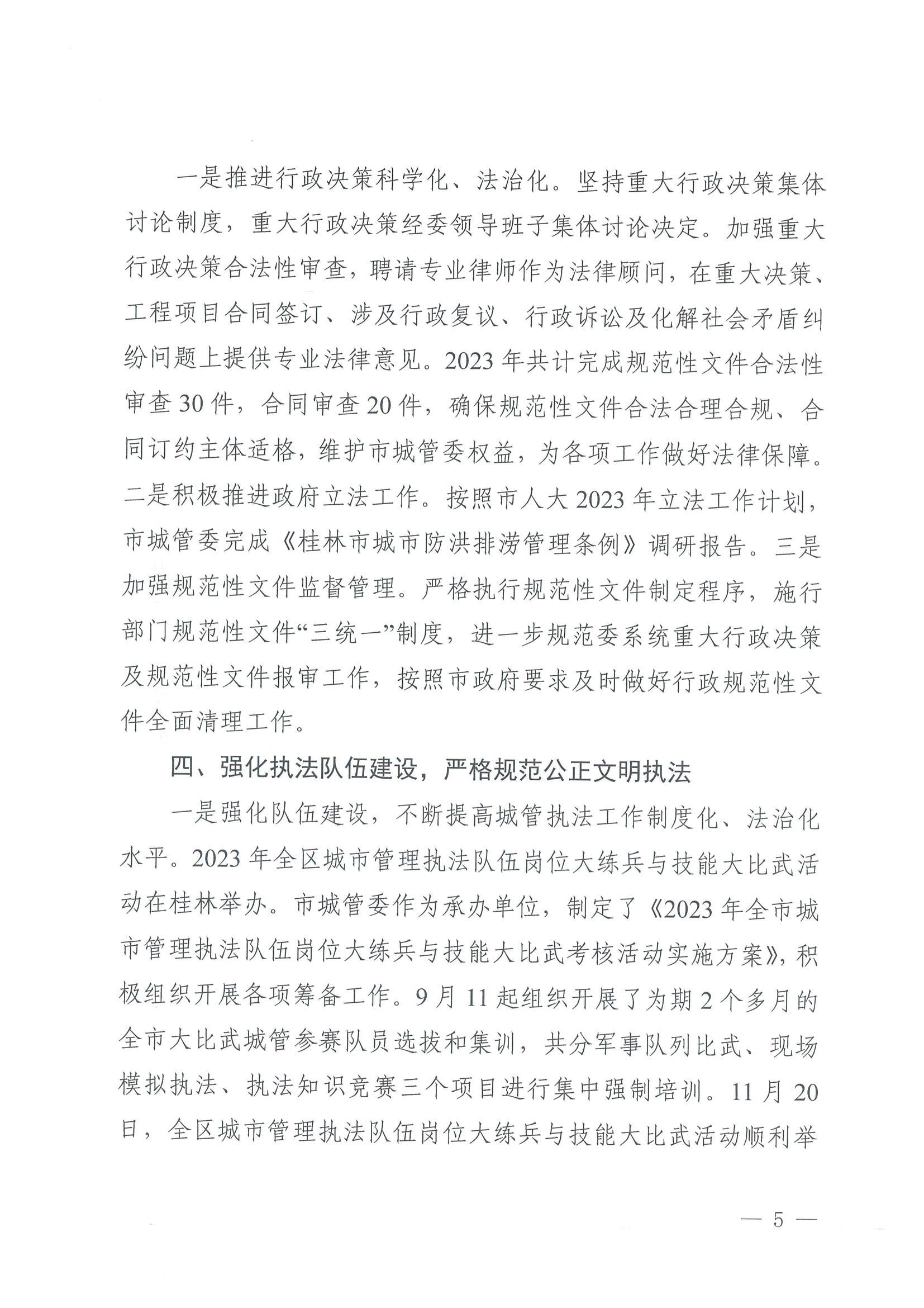 桂林市城市管理委员会2023年法治政府建设工作报告