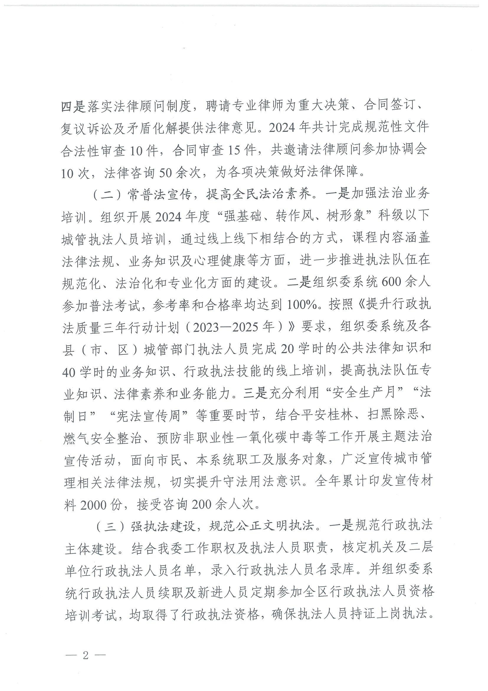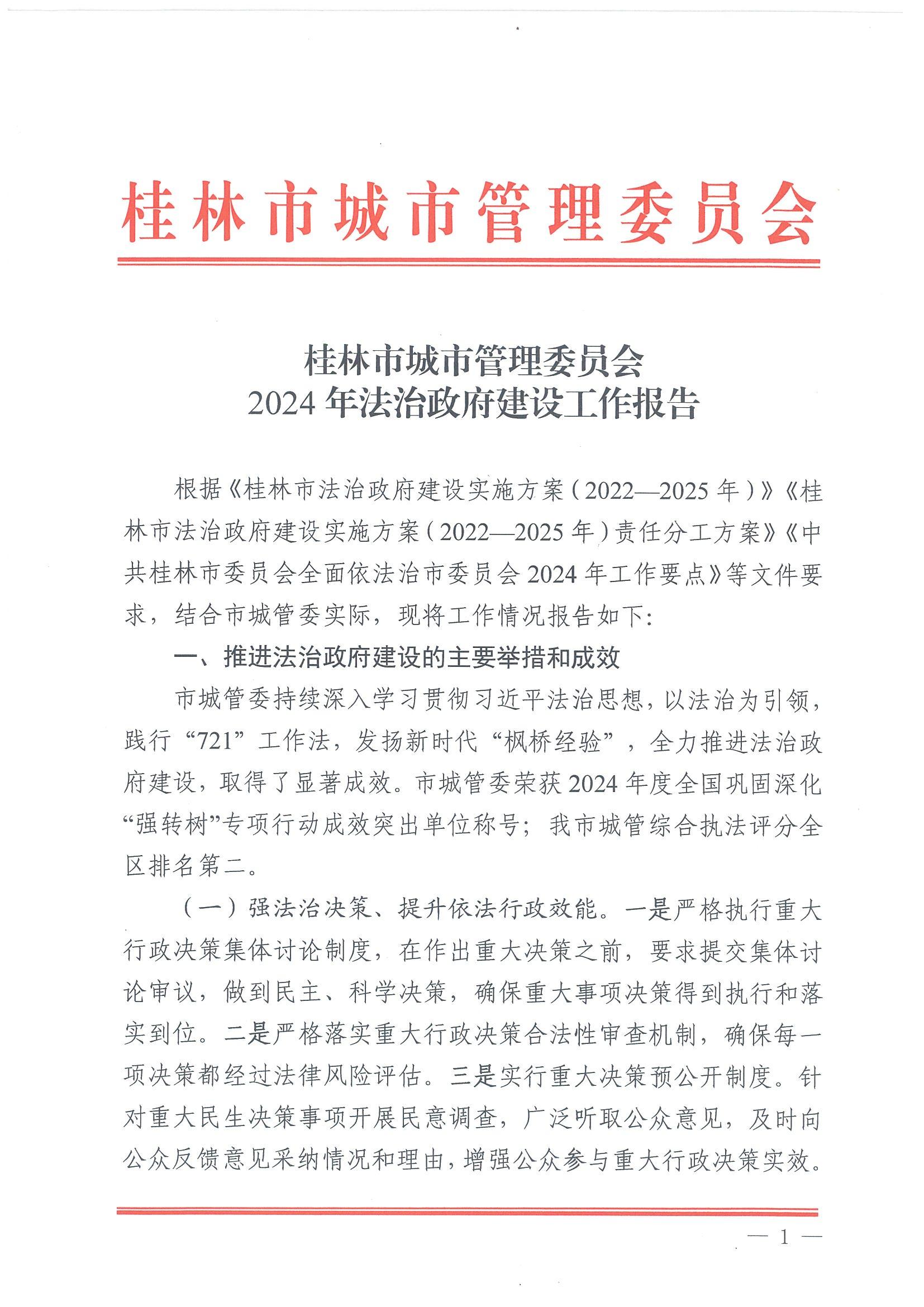 桂林市城市管理委员会2024年法治政府建设工作报告